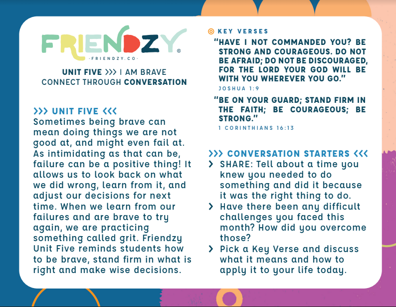 THIS MONTH /// We are rounding the corner and starting unit five of Friendzy. We hope that you are beginning to see your child grow in their knowledge and understanding of God’s design for friendship, and maybe you're learning some things along the way as well!
